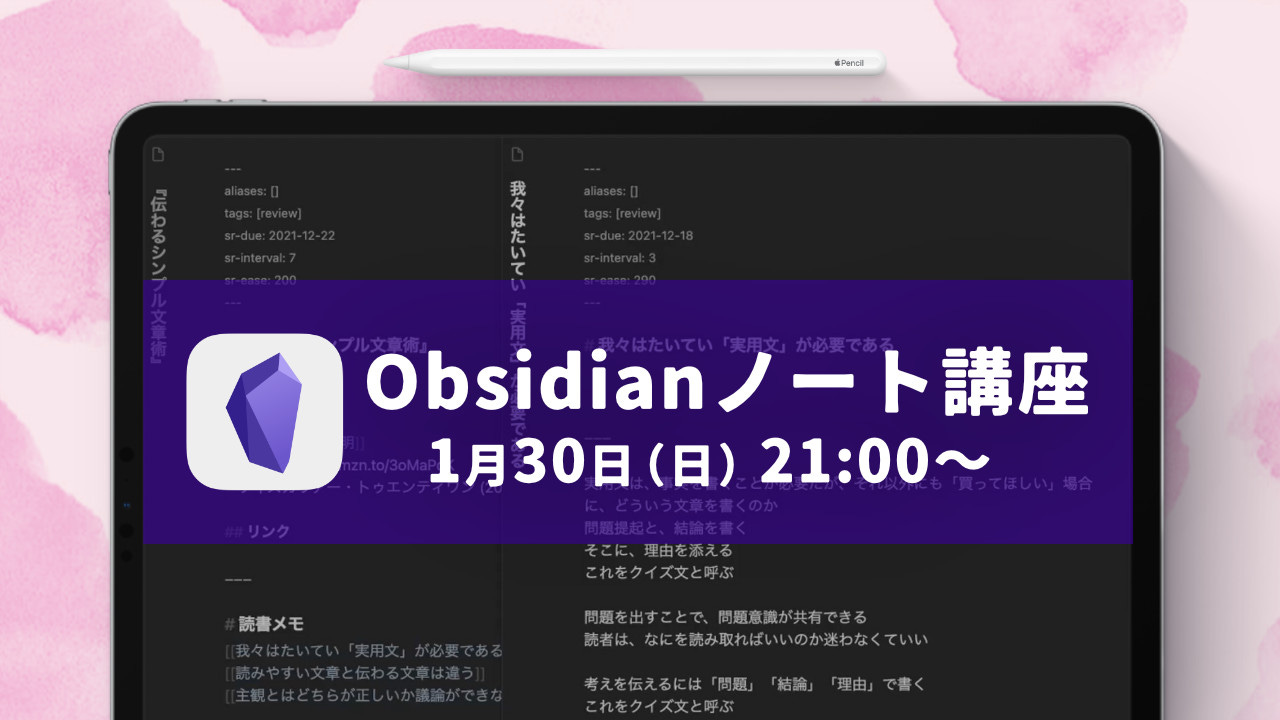 好評につき2月もObsidian講座を開催しますので、よければProメンバー登録お願いします。