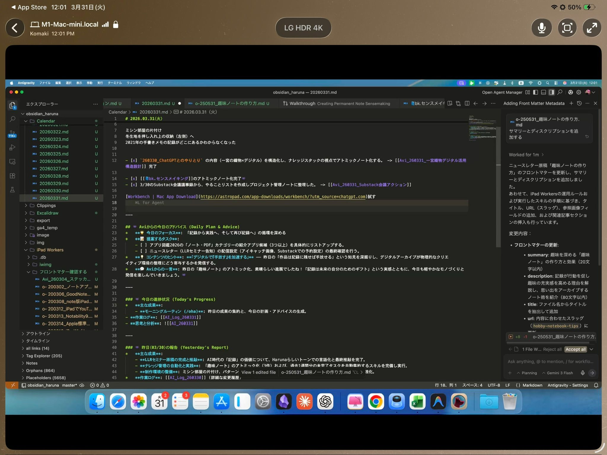 たとえば、私が最近愛用している「Antigravity」のようなツールは、PCのVS Code環境をベースにしており、iPad単体では動作しません。他にも、ClaudeのCoWorkや、ローカルLLM環境など、PCがないと動かないツールの利用が増えているんです。