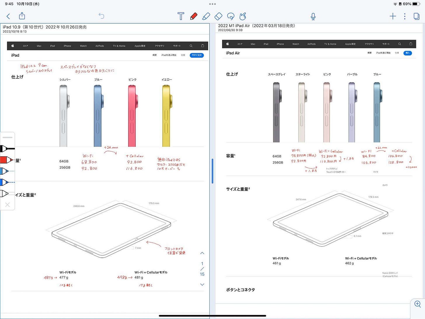 iPad miniの最安モデルが78,800円、M1 iPad Airが84,800円と無印iPad(第10世代)に+1万〜1.6万円で購入できるので、それならApple Pencil(第2世代)が使えるモデルの方が断然おすすめです。