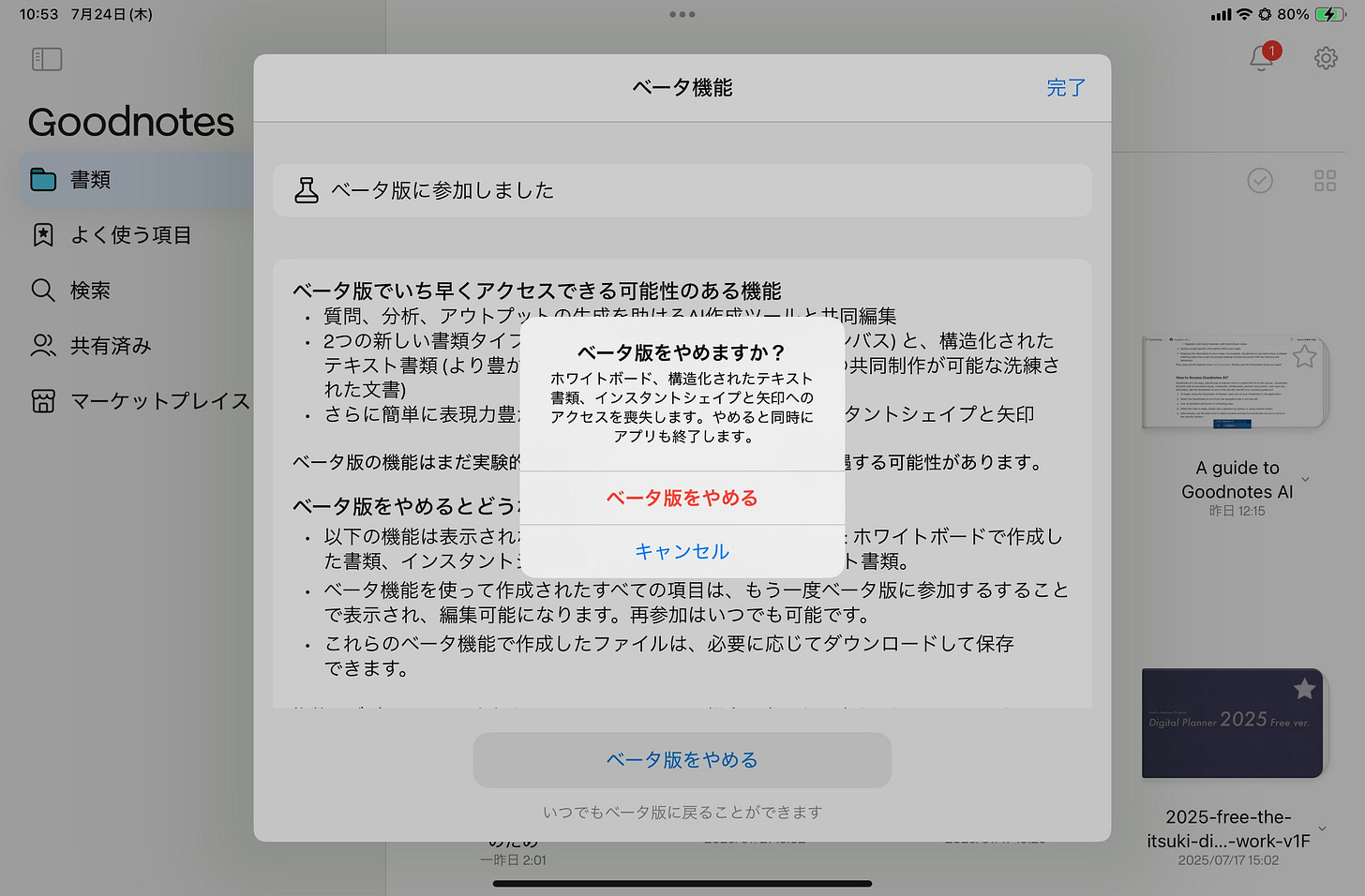 📴 Goodnotesのベータ版を止める方法