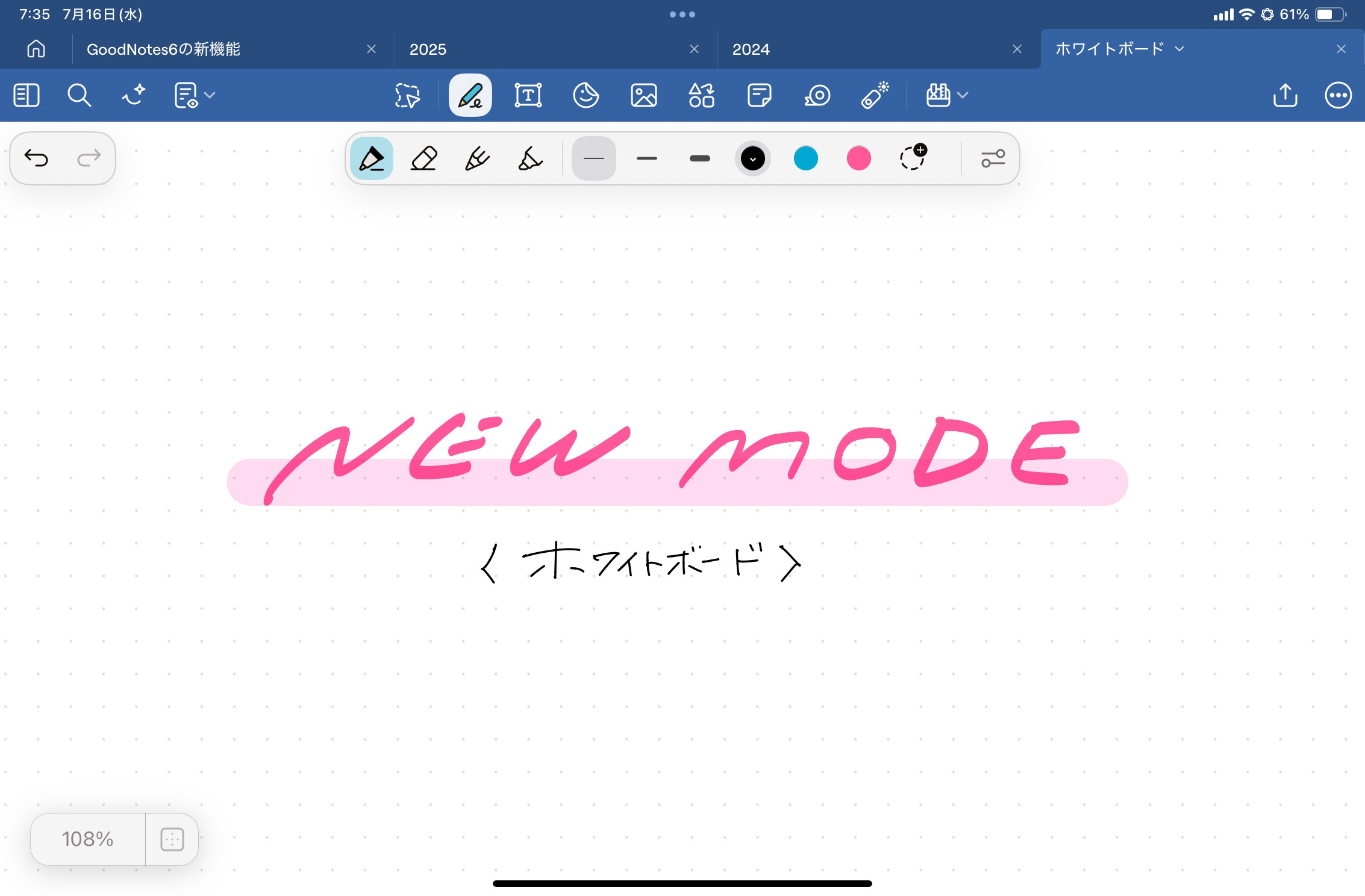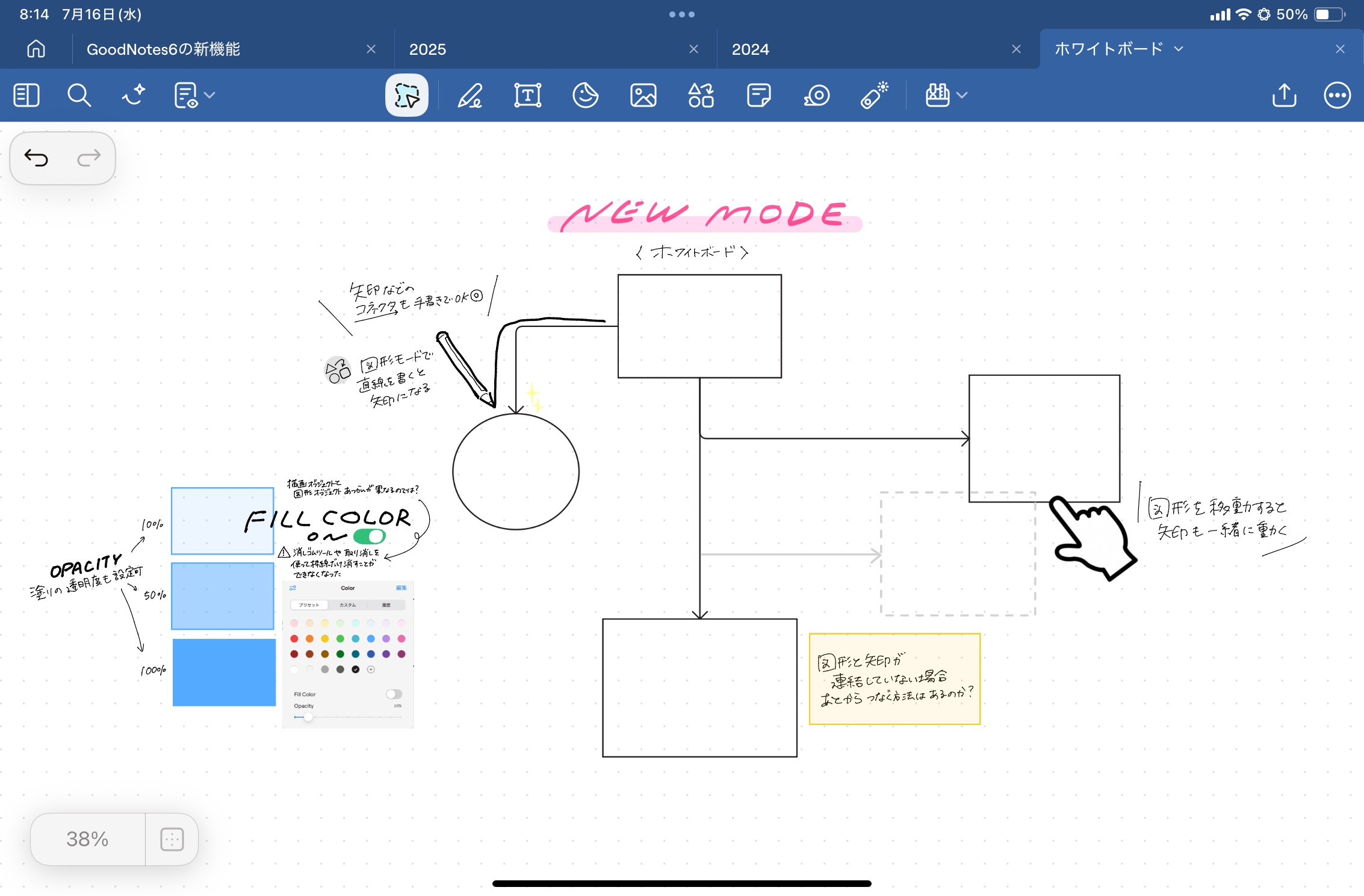今まで、無限キャンバスを使いたい場合はProdraftsやAppleのフリーボードを使用していましたが、今後はGoodnotesだけでよくなるかもしれません。