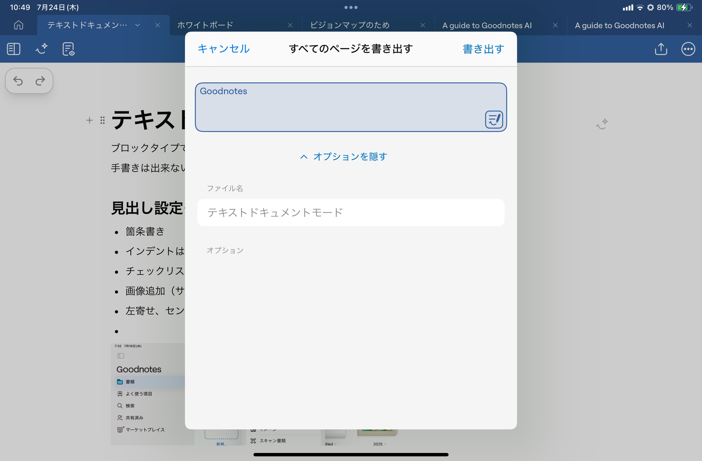 現時点では書き出し形式が「.goodnotes」のみに限られている点、保存場所がGoodnotes内になるなど、他のアプリであまり使いやすくなさそうな点が気になりますが、こちらも正式リリースの頃にはもっとパワーアップしてると思います。
