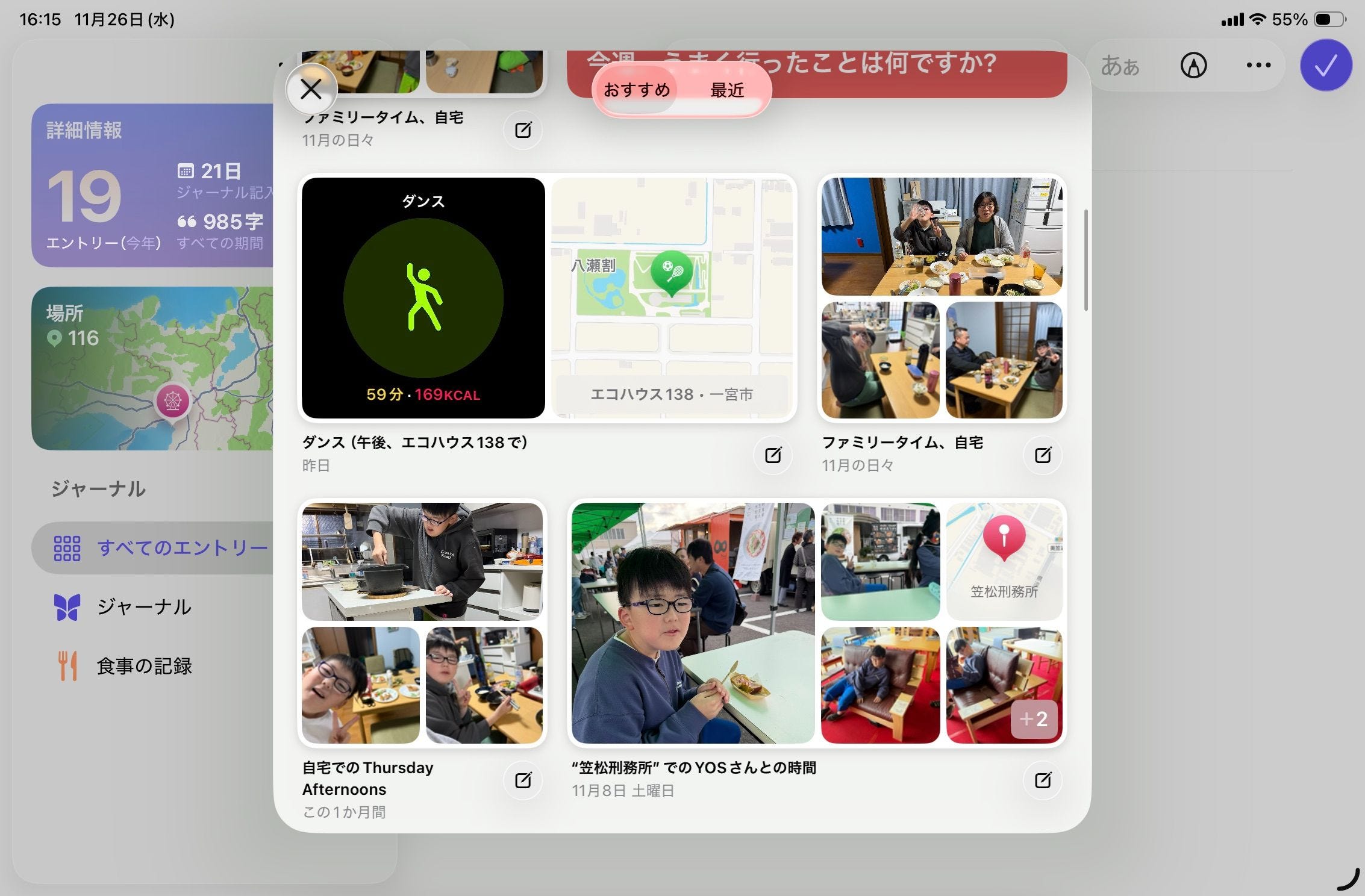 こういうものを総合的に読み取って、「この日の出来事を日記にしてみませんか?」と提案してくれるのは、非常によくできています。