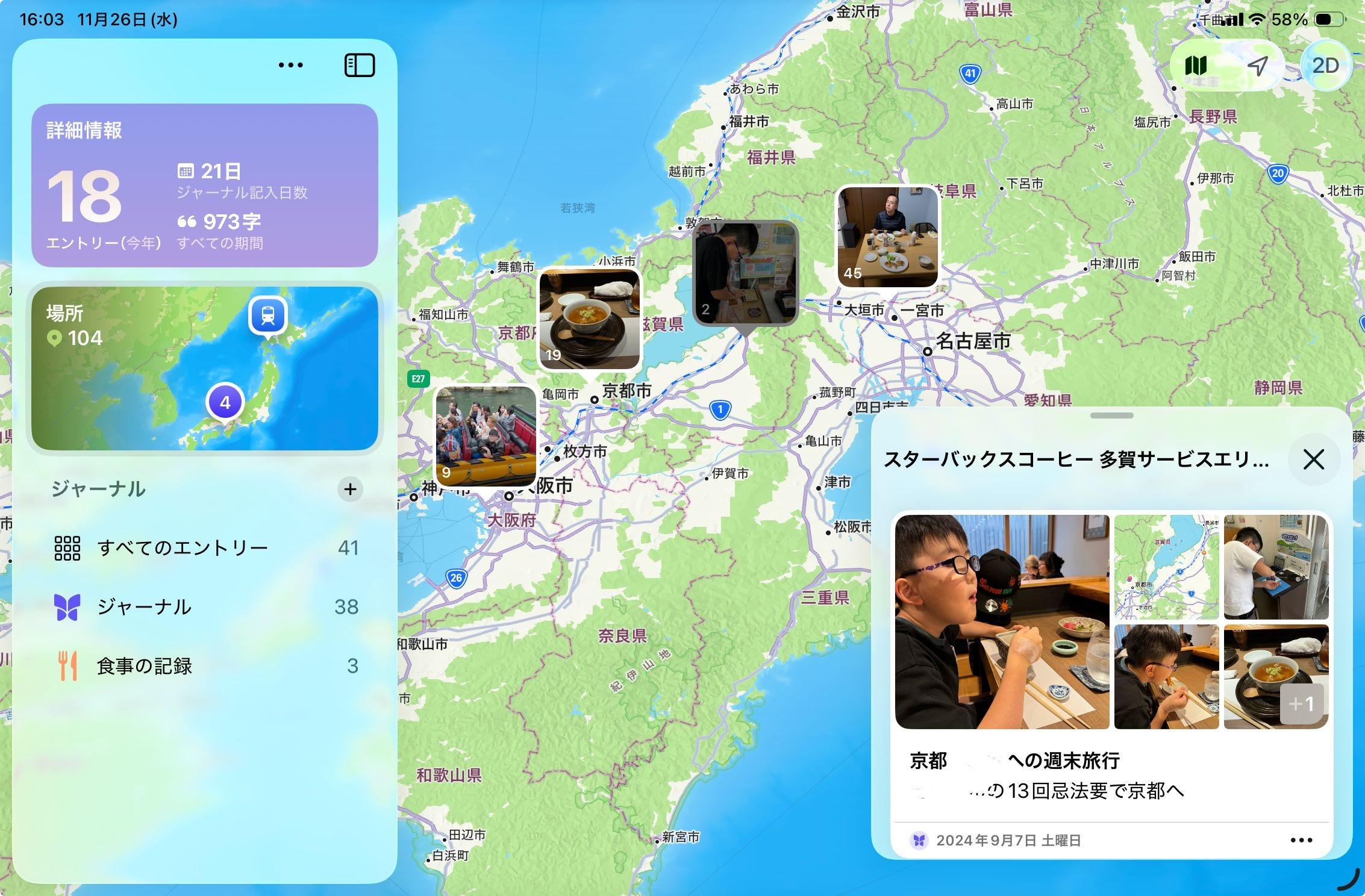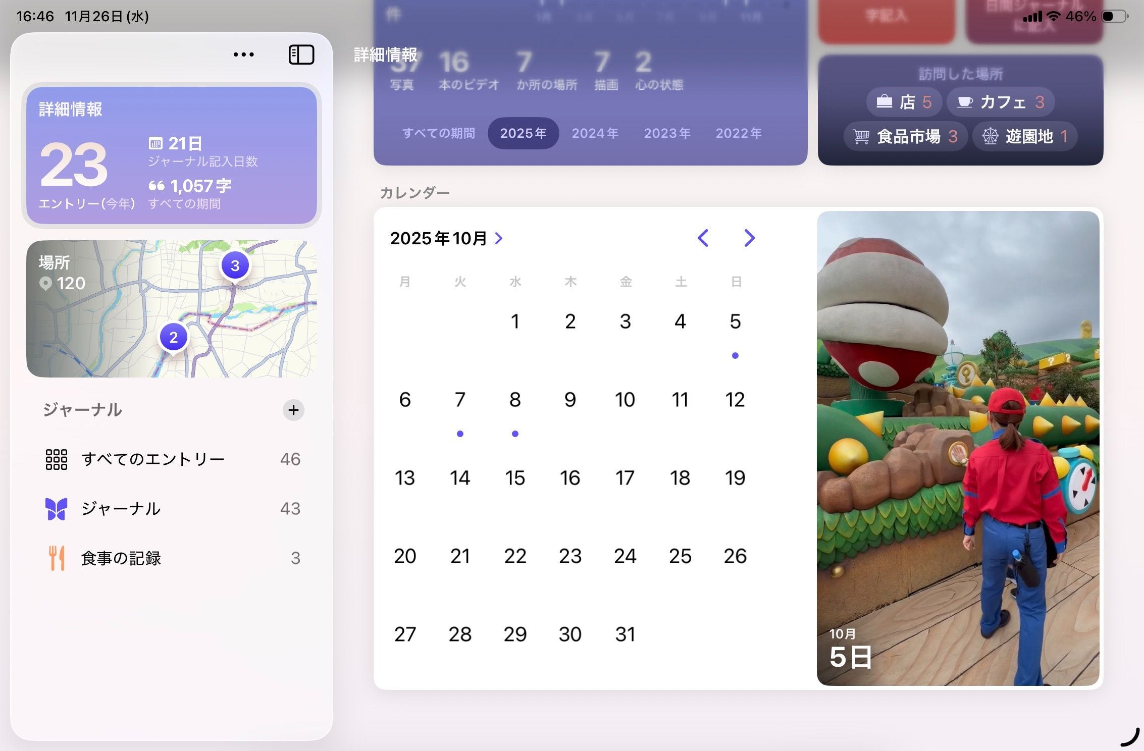特に地図上から日記を探せる機能は操作も快適で、視覚的にもとても見やすくなっています。