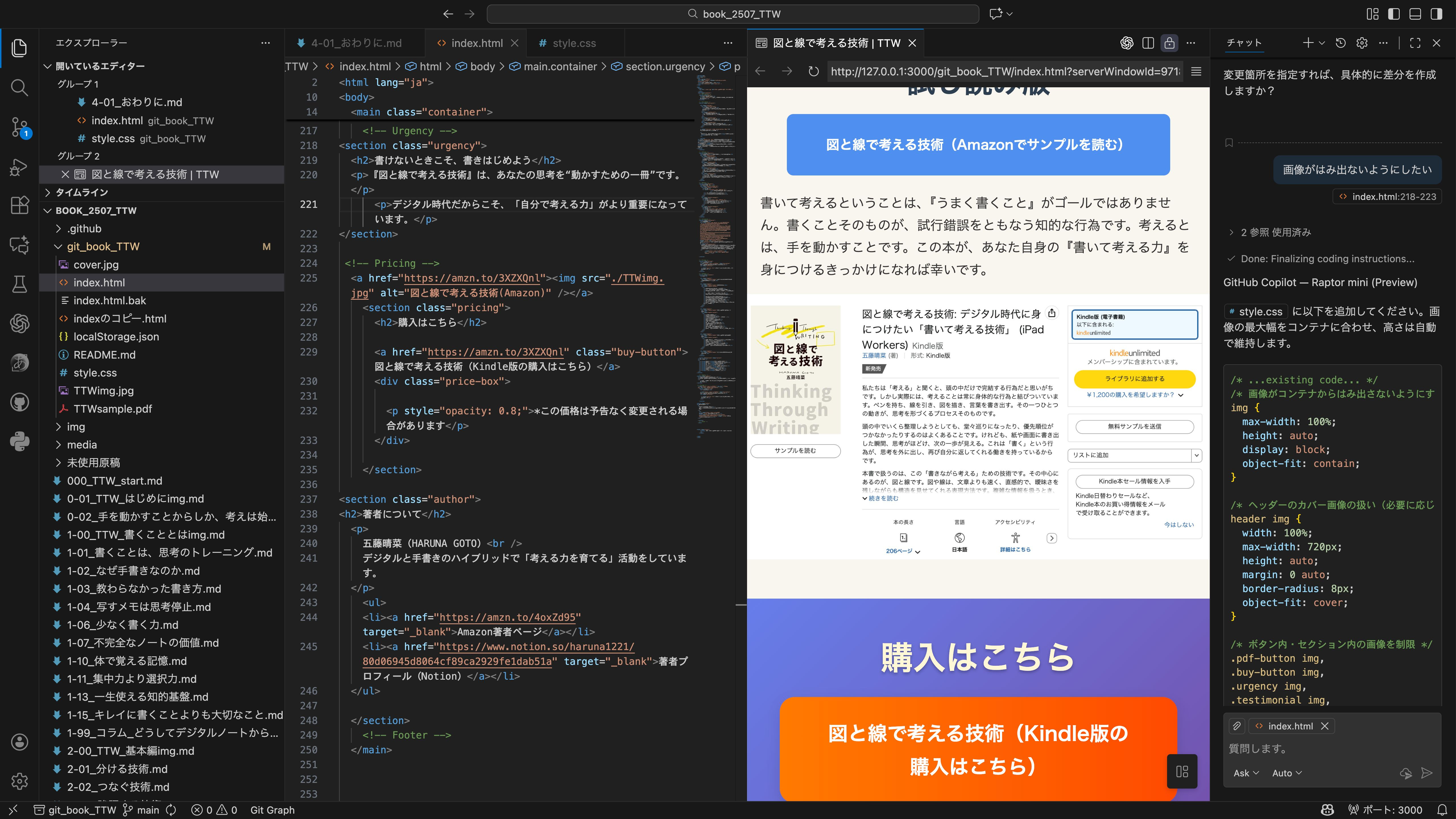 CSSの修正も「ここを直して」と頼むだけで修正してくれます。ちゃんとしたコードが書けなくても、ここをこうしたいということがちゃんと伝えられたら、それで解決します。