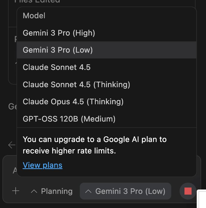 将来的に課金しないと使い物にならない可能性(高性能なAIモデル使用回数制限などが今はまだゆるい)はありますが、私の今回やった作業に関しては、無料プラン内で十分にカバーできました。現在、無料プレビュー期間中ですが回数制限(Weekly Quota)があります。Highモデルを多用すると上限に達しやすくなるため、作業は全てLowモデルで行いました。
