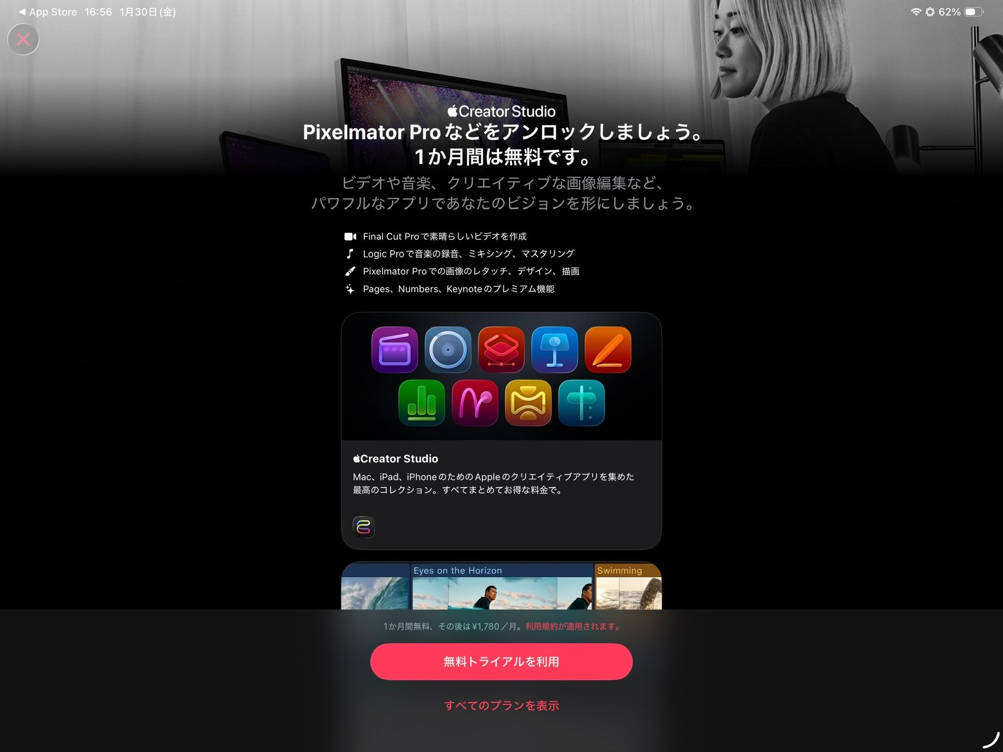 Appleから、iPadやMacでクリエイティブな作業をする人向けの新しいサブスクリプションプランが発表されました。月額1,780円(学生なら480円)で、Apple製の複数のプロ向けアプリが使えるというプランです。