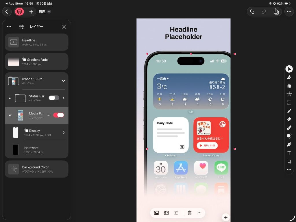 そのPixelmator Proが今回の「Apple Creator Studio」のサービス提供に合わせて、iPadでも使えるようになったんです。(MシリーズまたはA16以降のチップ搭載モデル対応)