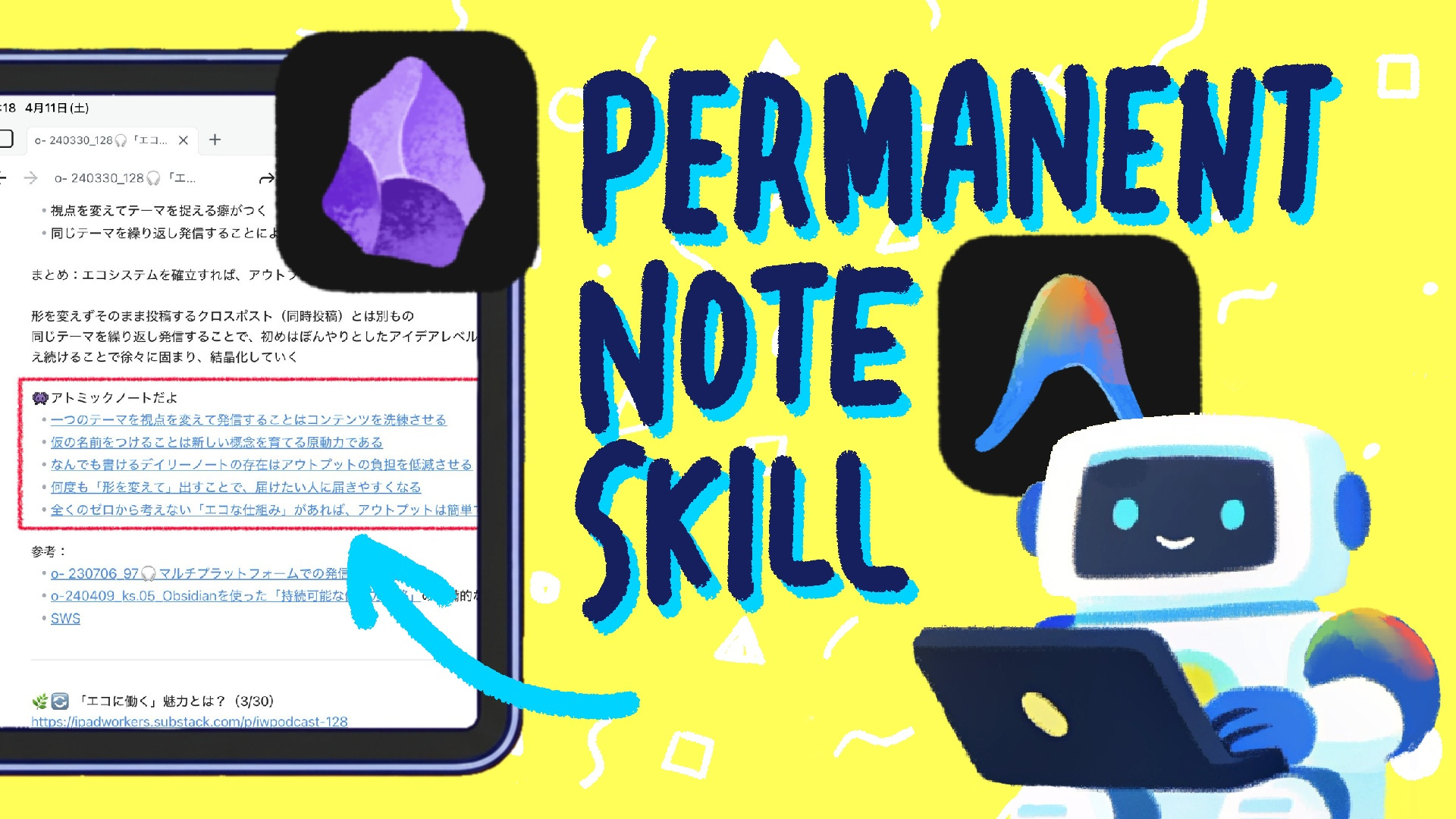 今日は、AIを使った「Create Permanent Noteスキル」を活用し、アトミックノートを量産して「エコに働く」エコシステムを確立する方法について紹介します。