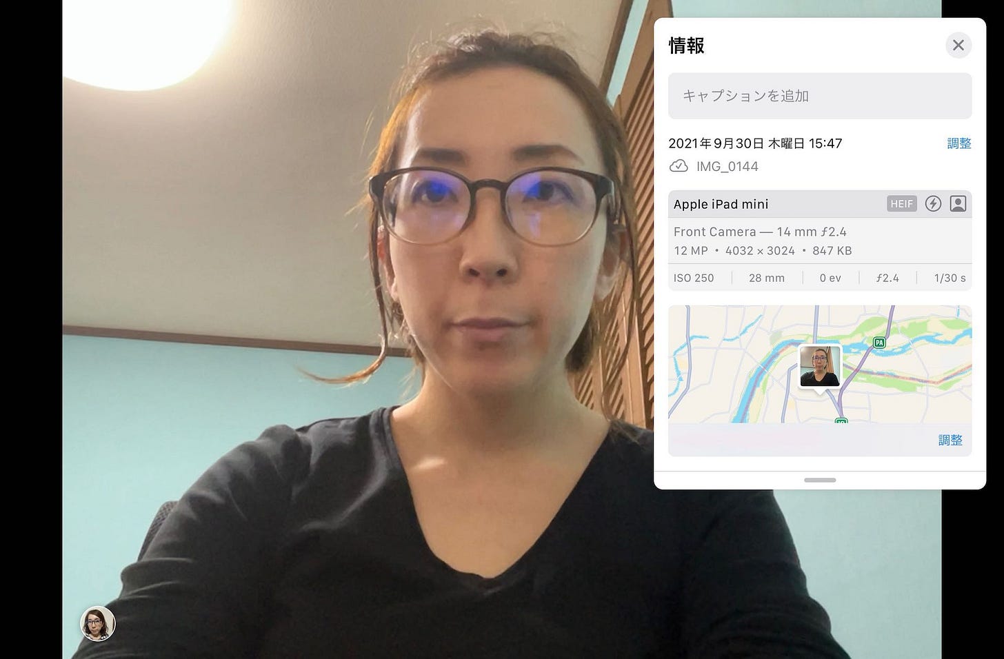 iPad miniのフロントカメラで撮影した写真のEXIF情報です。