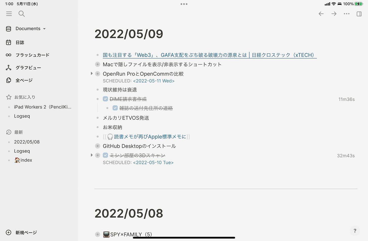 iPad Workers Podcast第48回は「Logseqを使ったタスク管理術」についてのお話です。