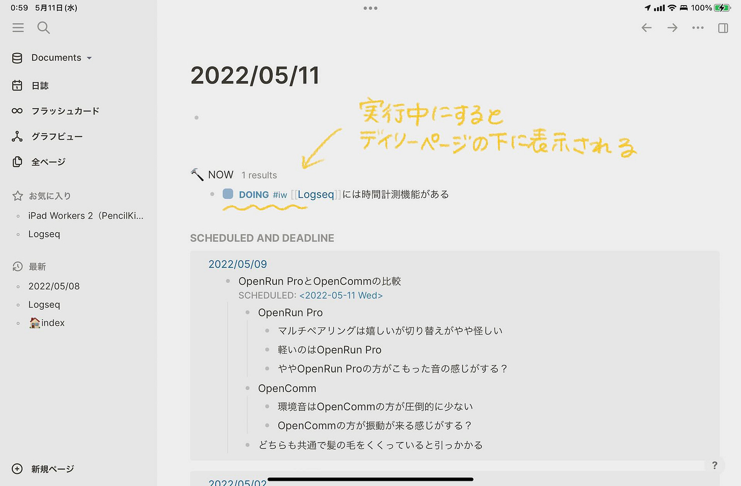 その他クエリを使ったTODO管理法などは、5月22日(日)🎥 Logseqを使ったiPadタスク管理講座で紹介予定です。