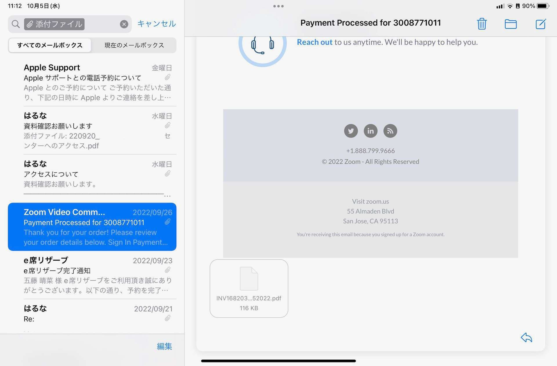 他にもメールに添付されていたPDFファイルを開き、マークアップで注釈を入れたものをそのまま返信も可能です。