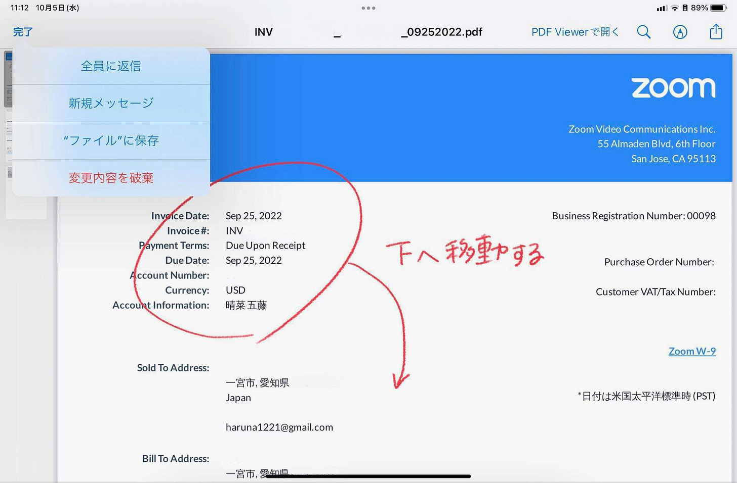 メールに添付されていたPDFを開くとプレビュー画面になります。右上にある鉛筆のマークアップボタンをタップすればそのまま直接書き込みが可能です。
