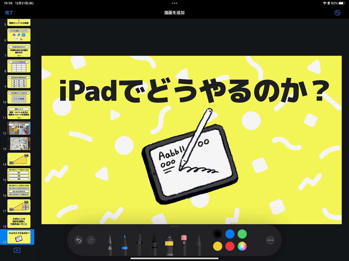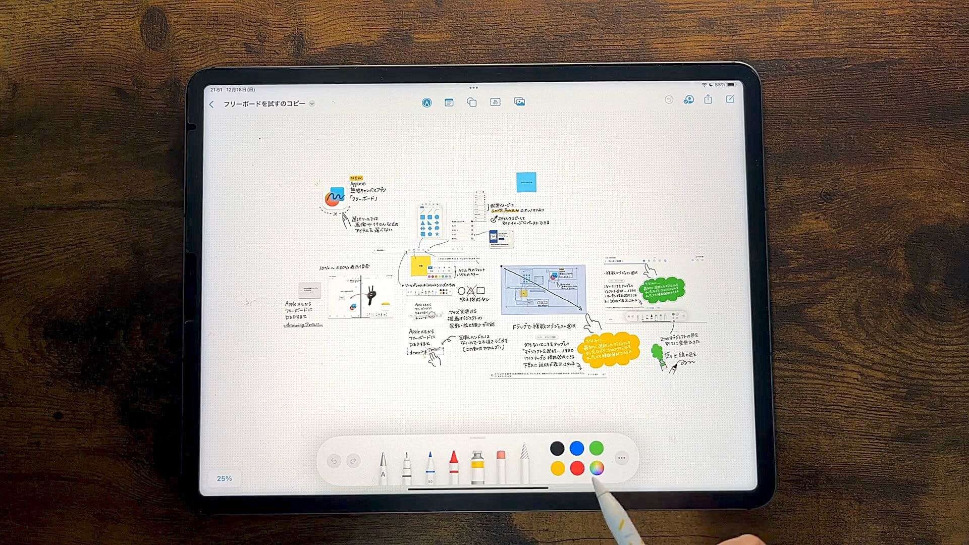 先日開催したiPadセミナーでは、フリーボードを使って1年の振り返りをしています。こういった使い方には向いてると思います。