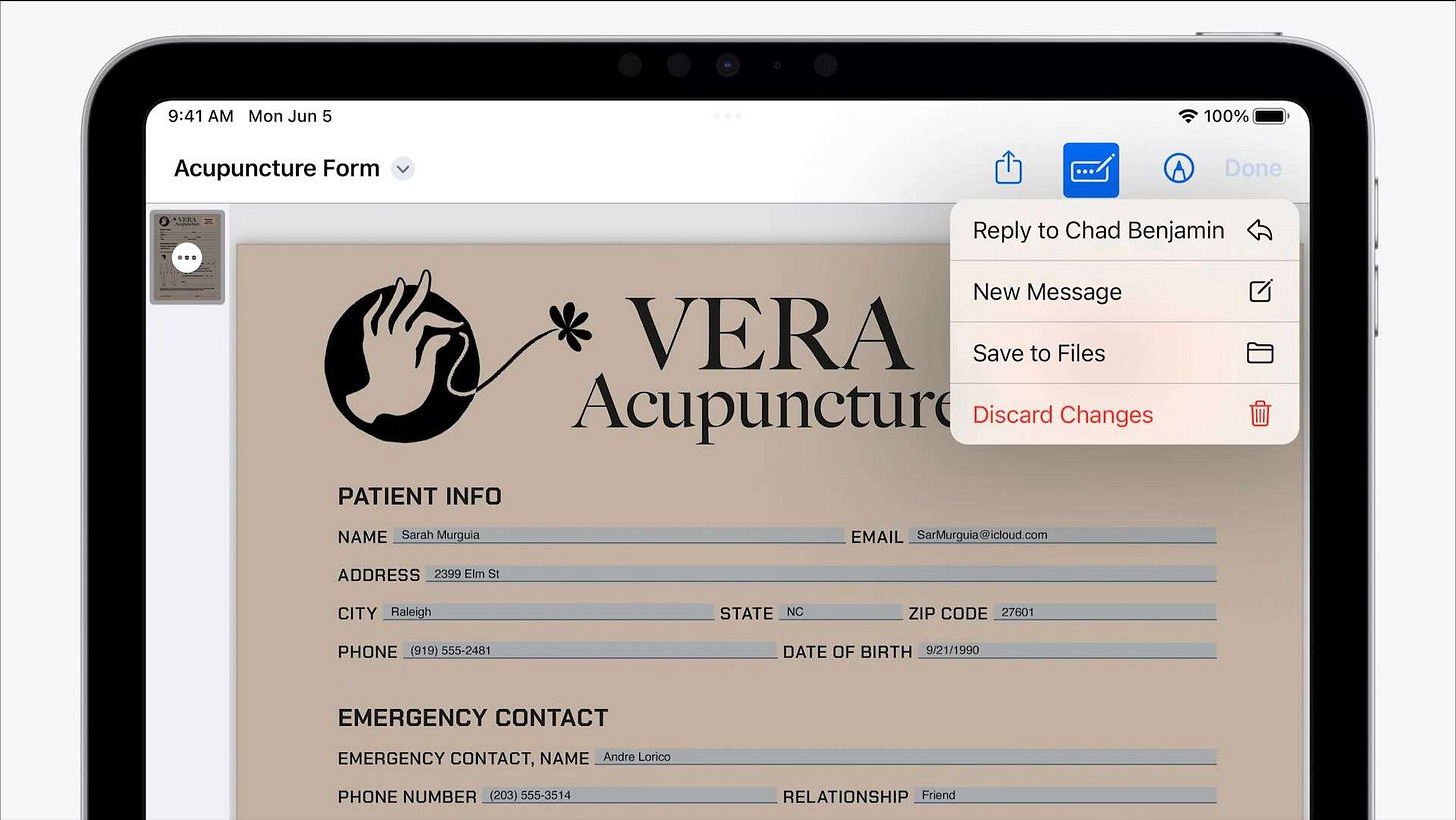 iPadOS 17からはメモに追加したPDFファイルはインライン表示でき、複数ページあるものはメモの画面で直接スワイプ操作でページめくりができます。また、手書きの注釈もこの画面のまま追加可能です。