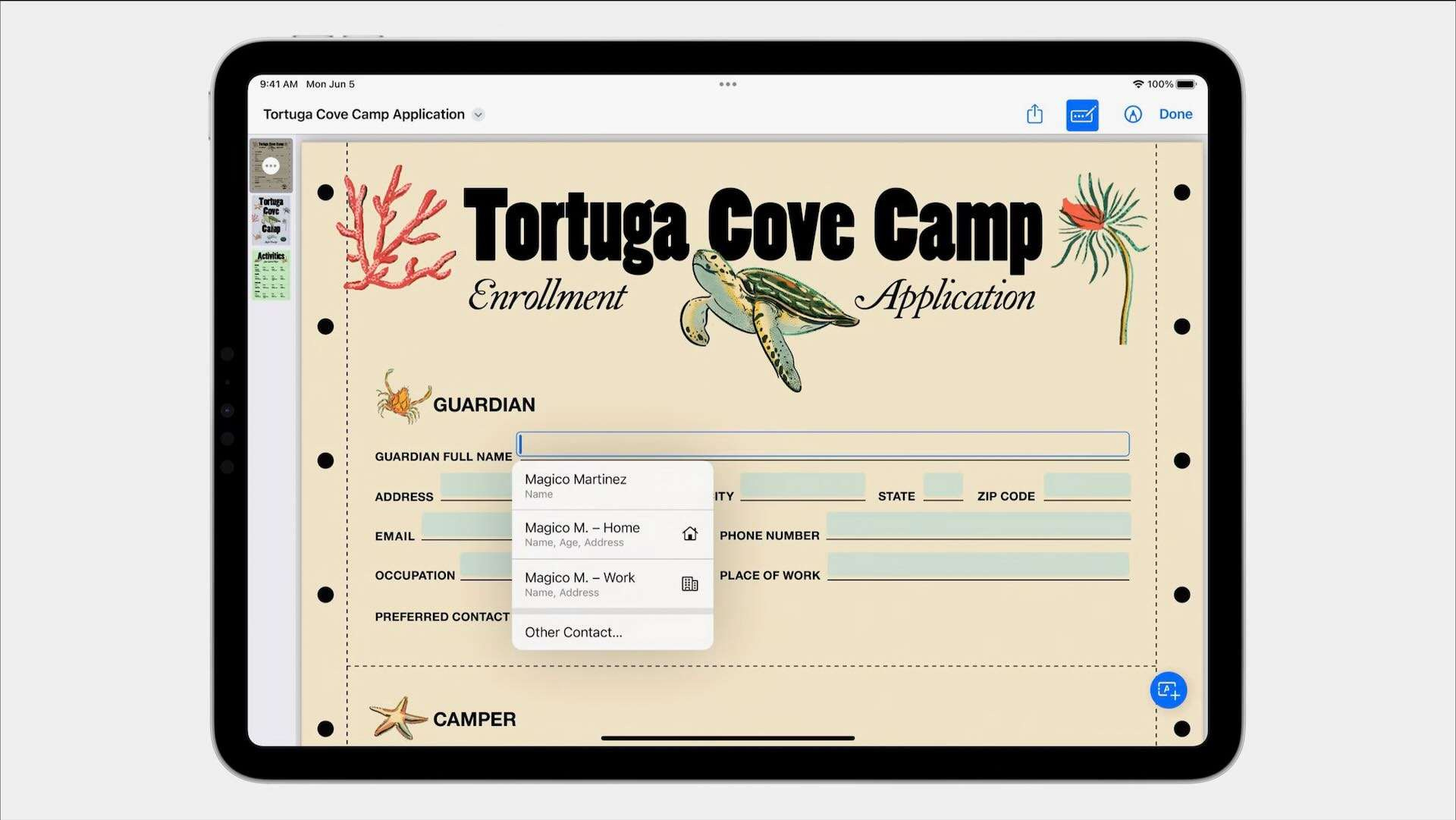 PDFファイルのフォームに記入する際、新しい機械学習モデルによってPDF内のフィールドを識別し、自動入力が可能になります。たとえば、名前・住所・メールアドレスなどが自動入力ですばやく記入できるのです。