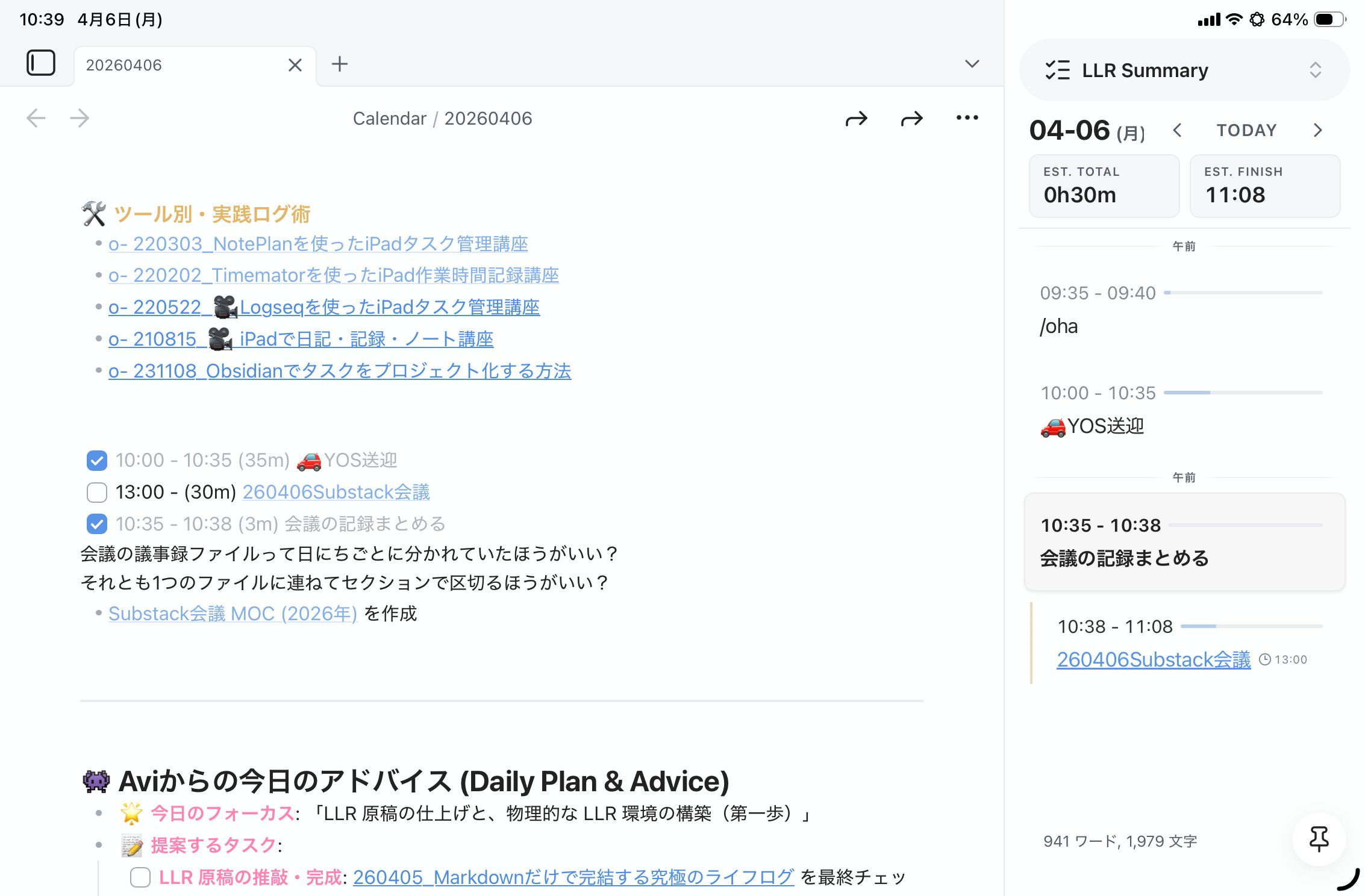 ということで今日は『Obsidianでのライフログを劇的に変える「LLRプラグイン」』というお話でした。