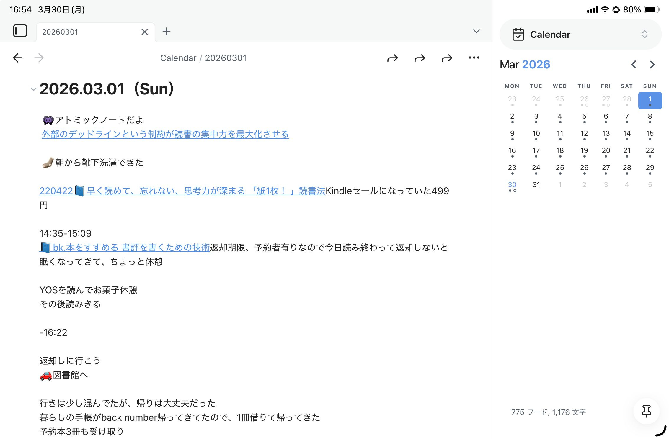 最近は、AI(主にAntigravity)を使ってノートを自動整理したり、情報を抽出したりすることをよくやりますが、その「土台」となっているのは、考えたことや、やったことを書いているデイリーノートです。