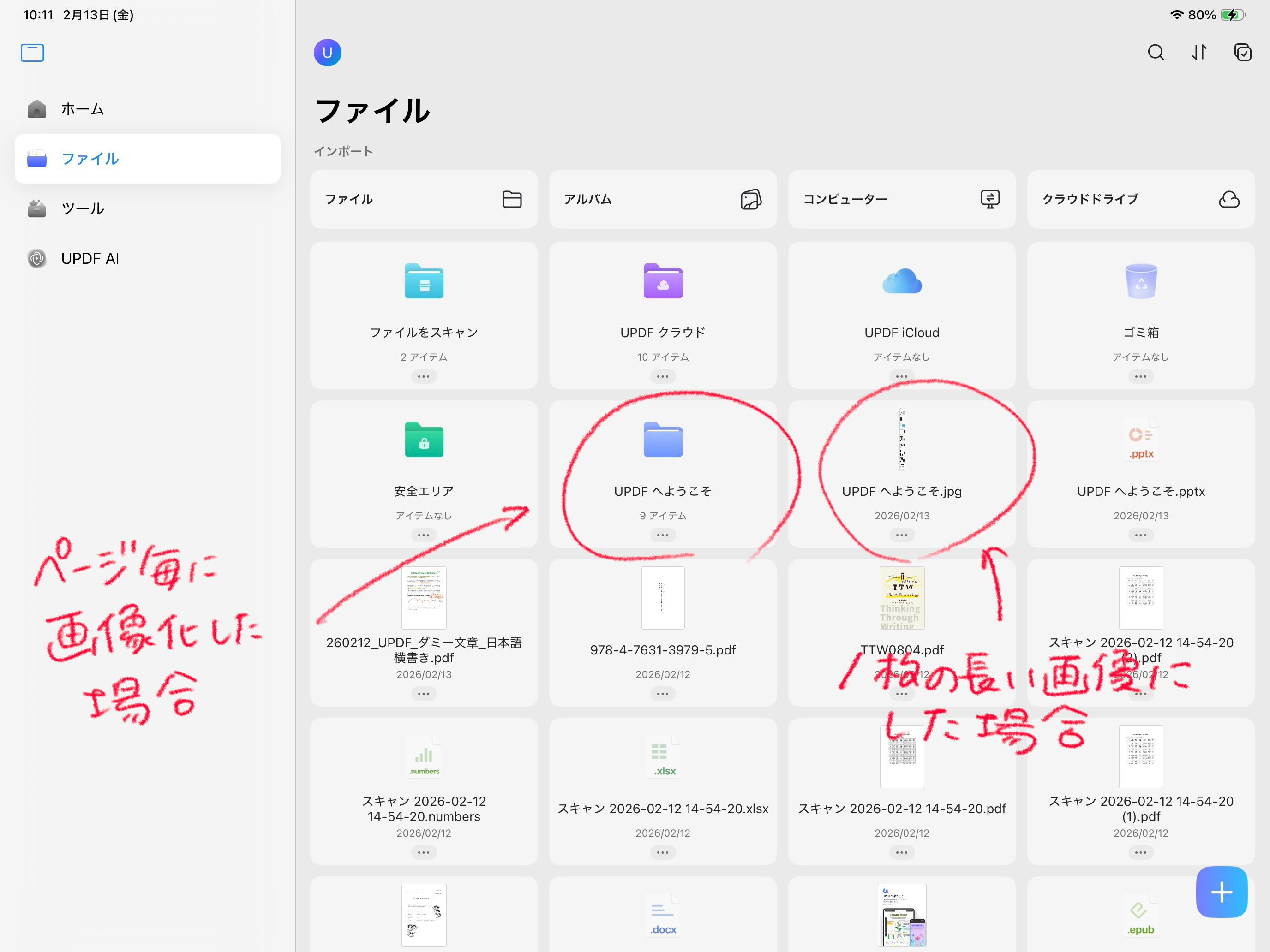 UPDFアプリに読み込んだファイルや、変換されたファイルは「このiPad内」にある📁UPDFフォルダ内に格納されます。