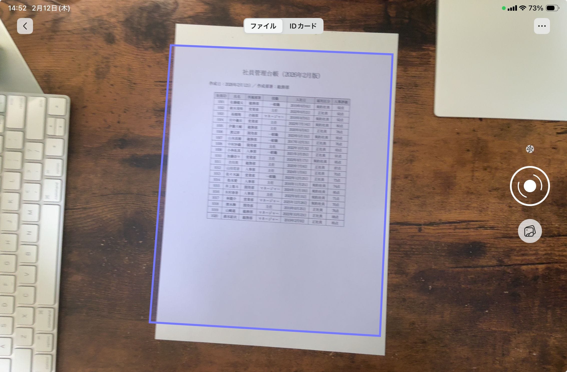 アプリが自動で、用紙の端を認識するので、多少斜めになっていても長方形に補正されます。