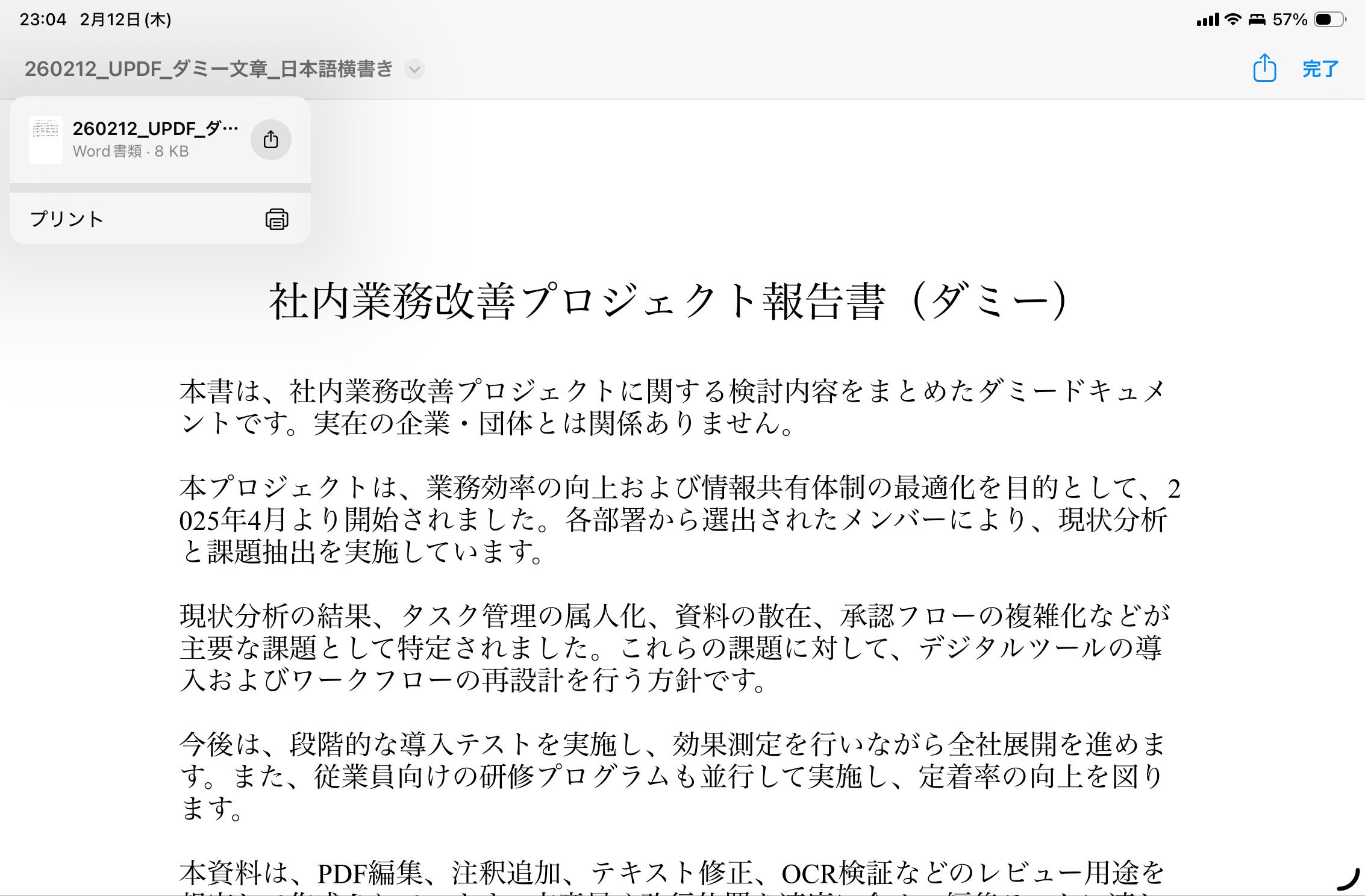共有ボタンからPagesやWordアプリで開けます。