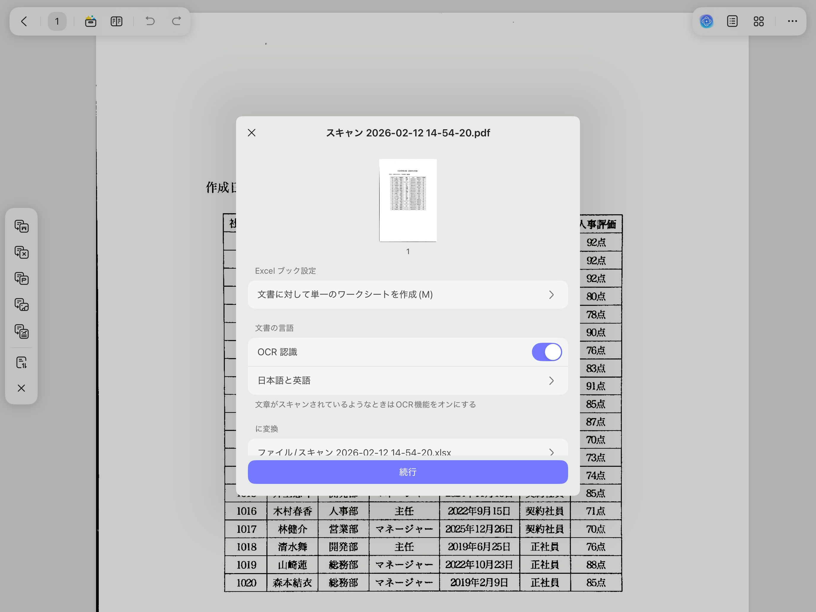 たとえば、紙で配られた表データでもUPDFのスキャン機能でPDF化し、さらにエクセルのデータに変換もできます。