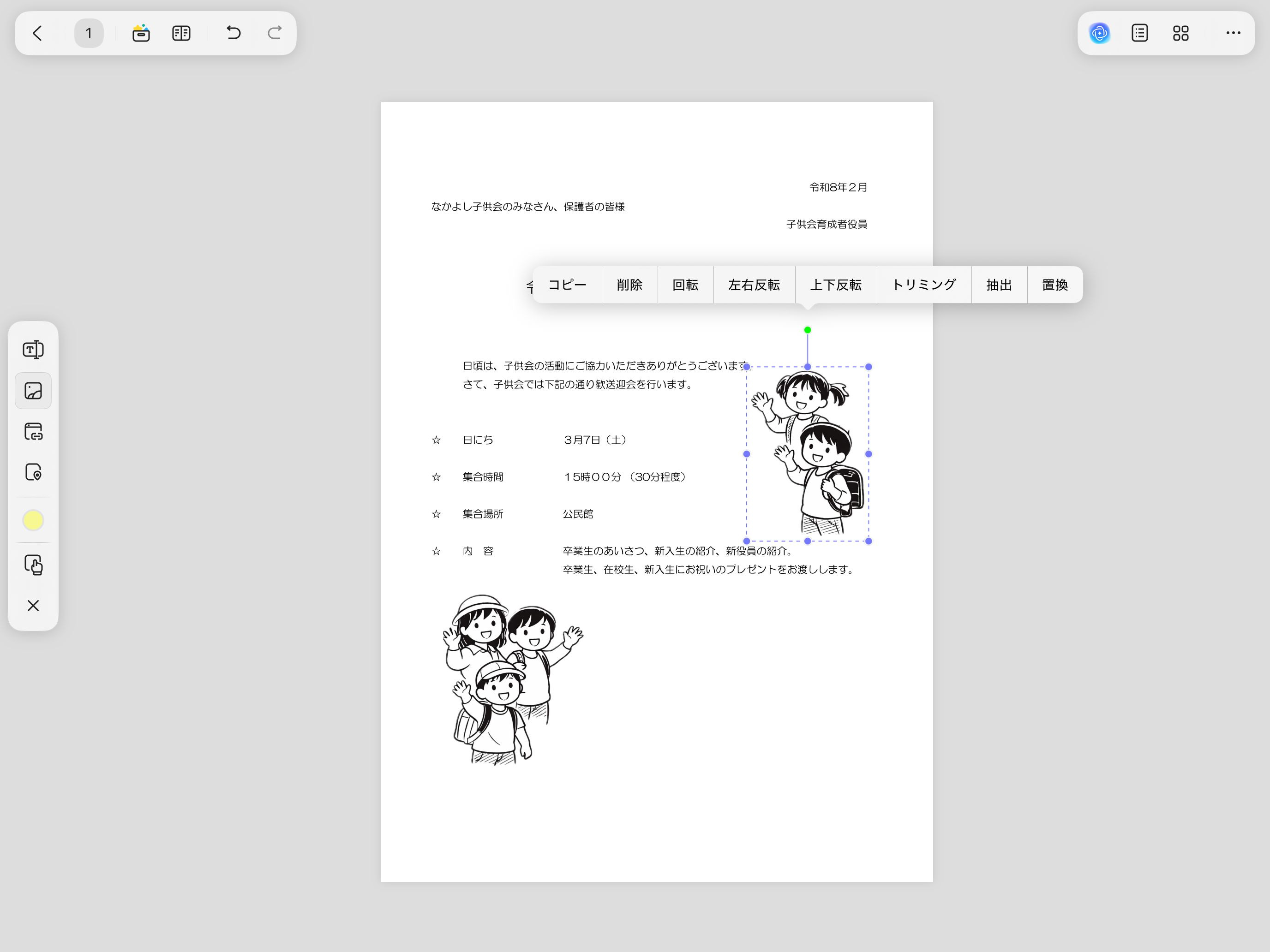 元のPDFファイルにもよりますが、配置されている画像の移動やサイズ変更も可能です。